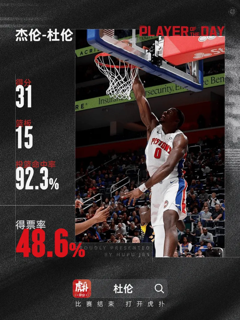 活塞自研魔兽!活塞杰伦-杜伦当选今日JRs评选最佳球员由JRs评选 发表在湿乎乎的自研话题 https://bbs.hupu.com/vote